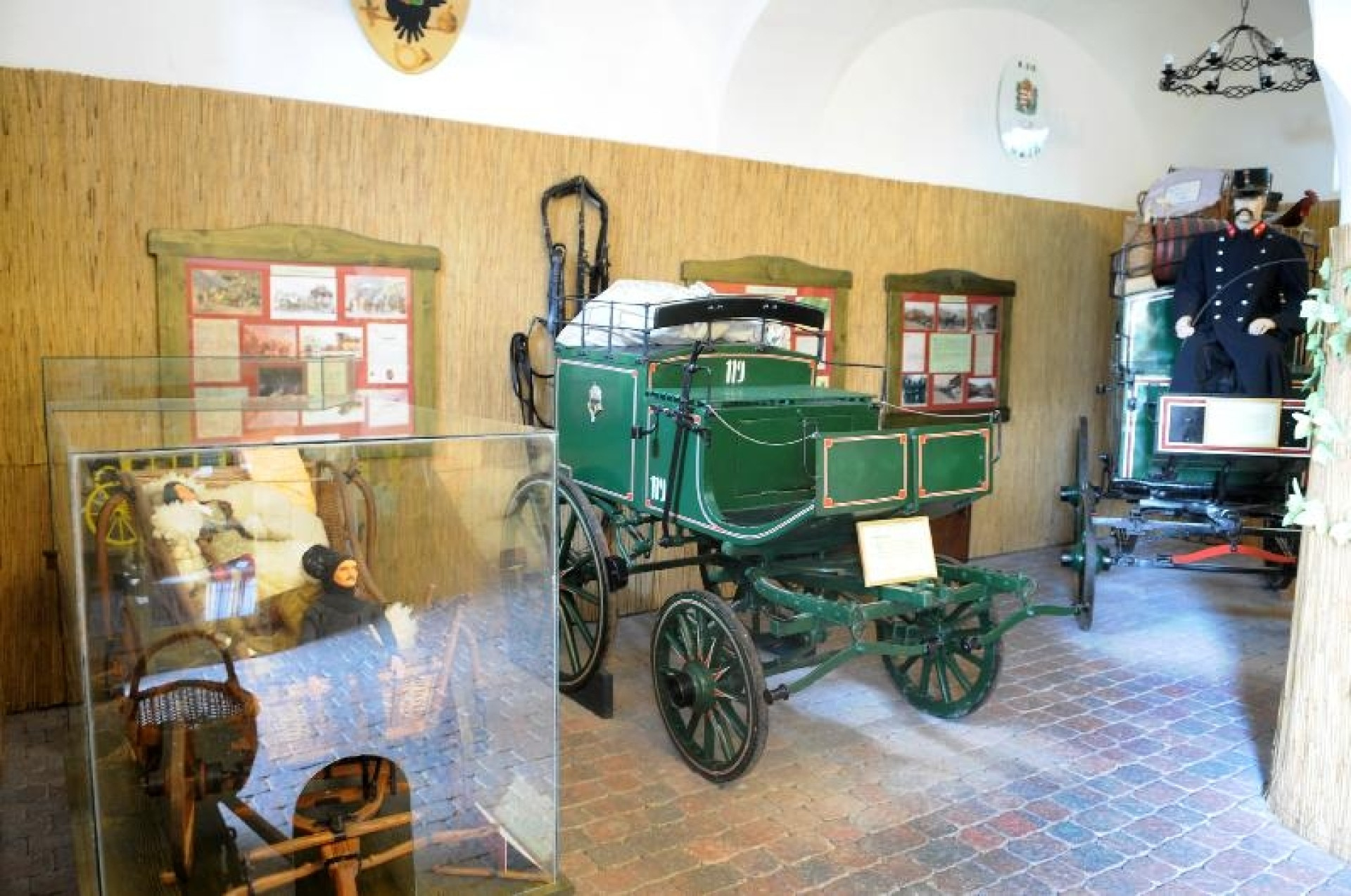 A hajdani istállóépületben berendezett új állandó, a "Kocsiszekértől a postaautóig" című kiállítás a Postamúzeum járműgyűjteményének válogatott darabjait tárja a közönség elé. Az épület történetéhez is kapcsolódva a kiállítás a postai szállítás történetét mutatja be a 15. századi kocsiszekértől a közelmúlt motoros meghajtású postaautójáig. A több évszázados istállóépületben és a Dunántúl jellegzetes népi gazdasági épületét mintázó lábaspajtában elhelyezett eredeti és modellezett járművek, a korhű postai egyenruhákba öltöztetett bábuk, s a keretekben lévő dokumentumok, fényképek, térképek egy postatörténeti utazásra invitálják a kedves látogatót.