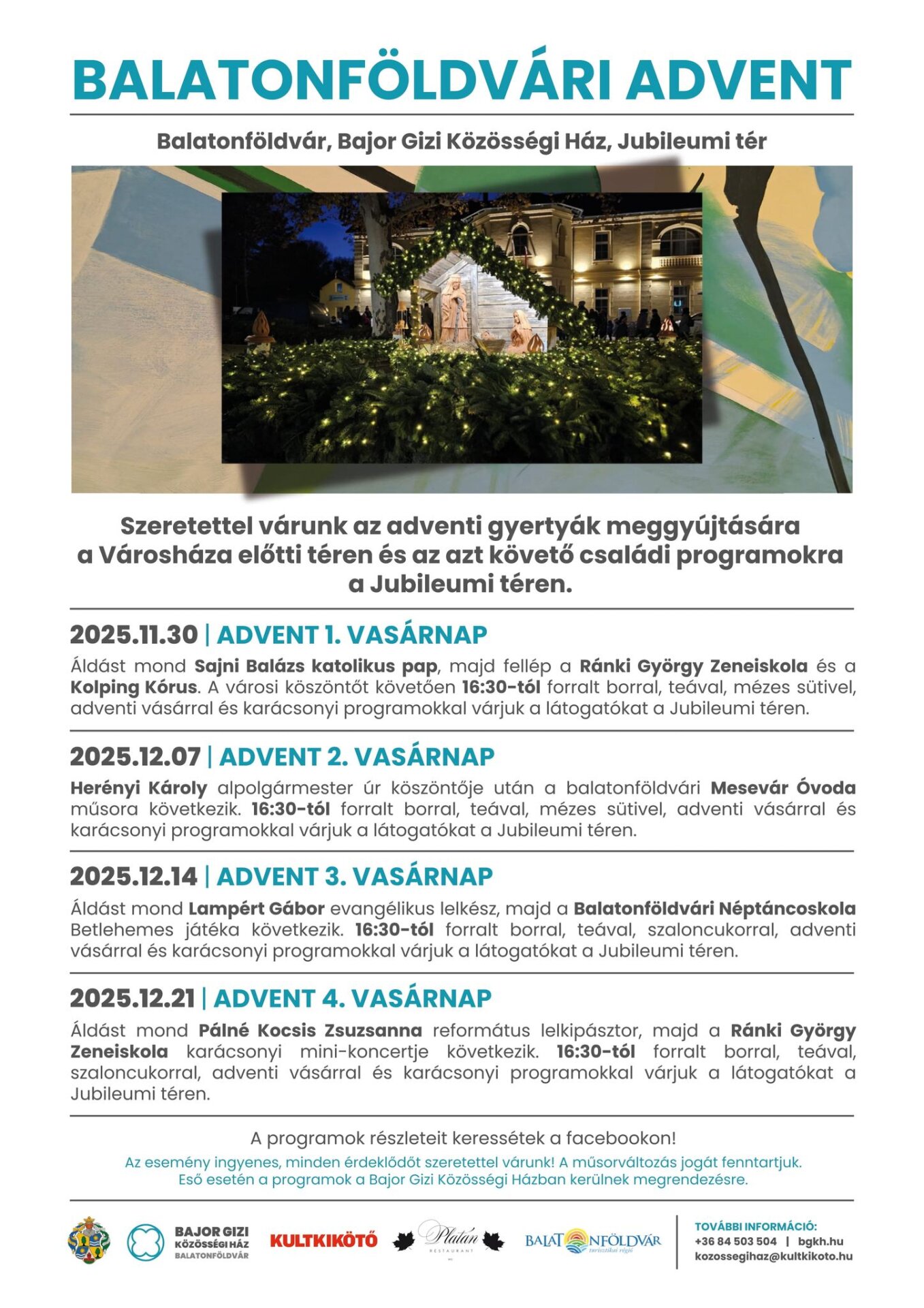 Időpont: minden advent vasárnap 16:00 órátólHelyszín: Jubileumi tér