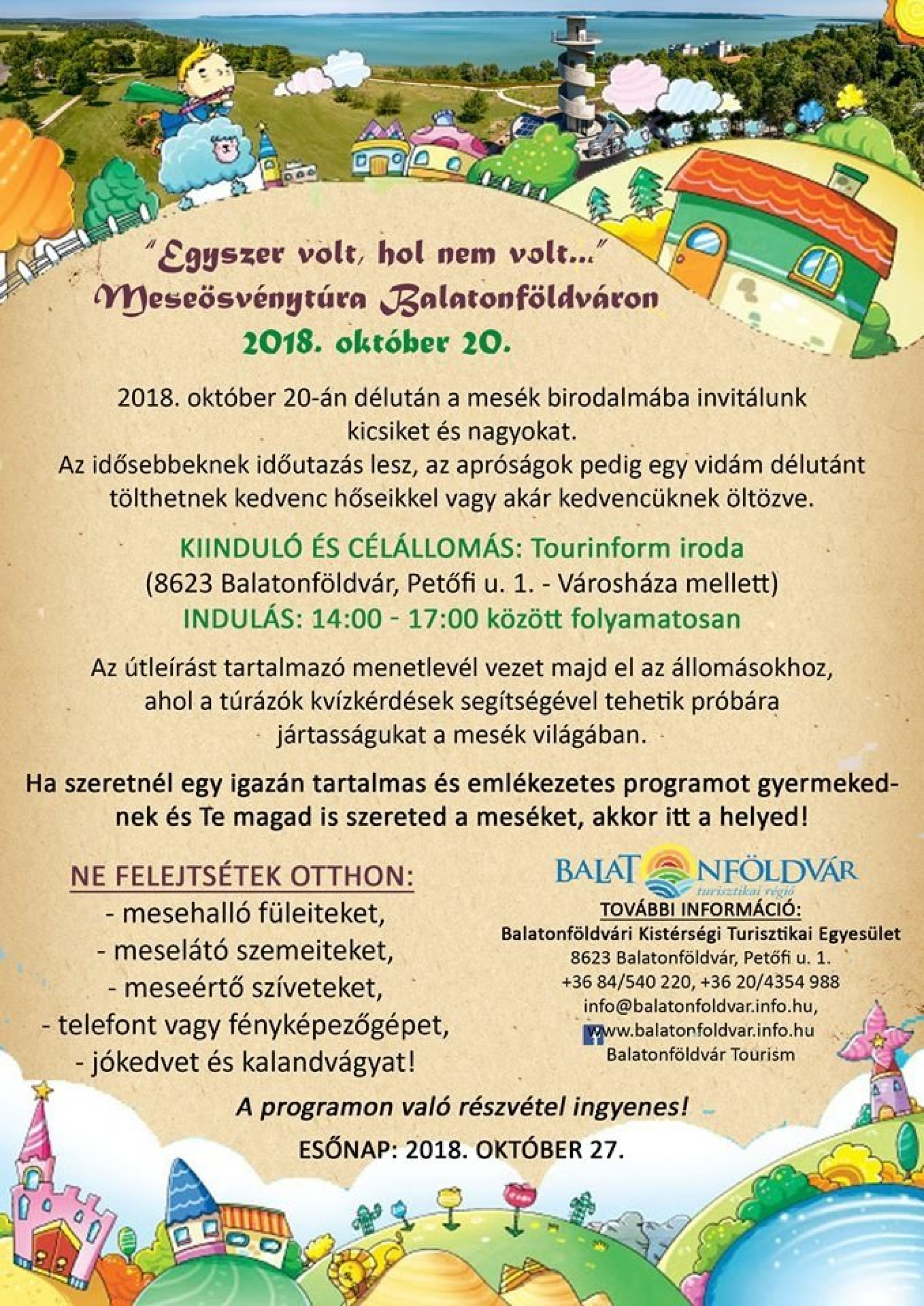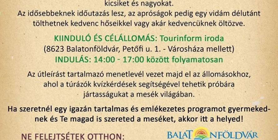 Kalandos, játékos túra Balatonföldváron a mesék világába 2018. október 20-án, szombaton!