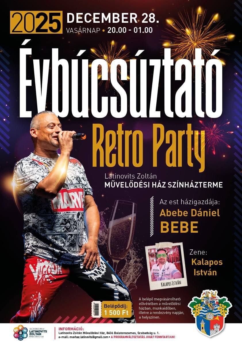 Évbúcsúztató Retro Party Balatonszemesen, az est házigazdája Abebe Dániel (BEBE).