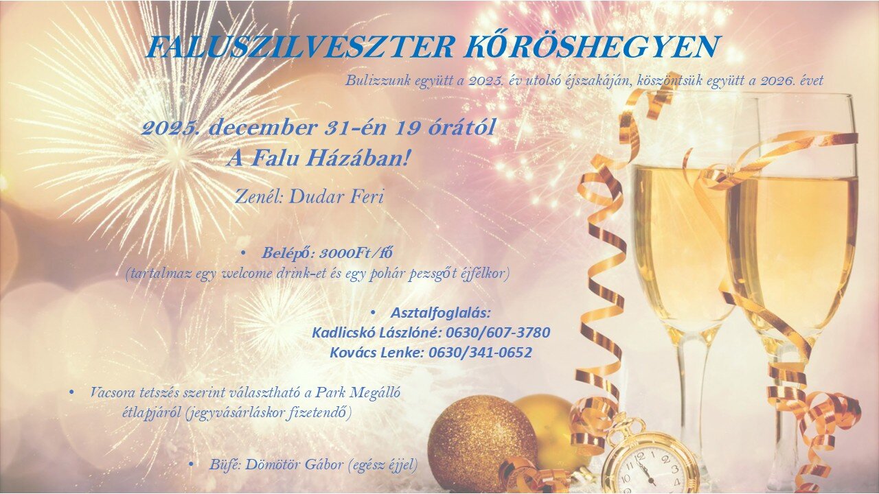Közös szilveszteri mulatság Kőröshegyen, Duda Feri fergeteges zenéivel!