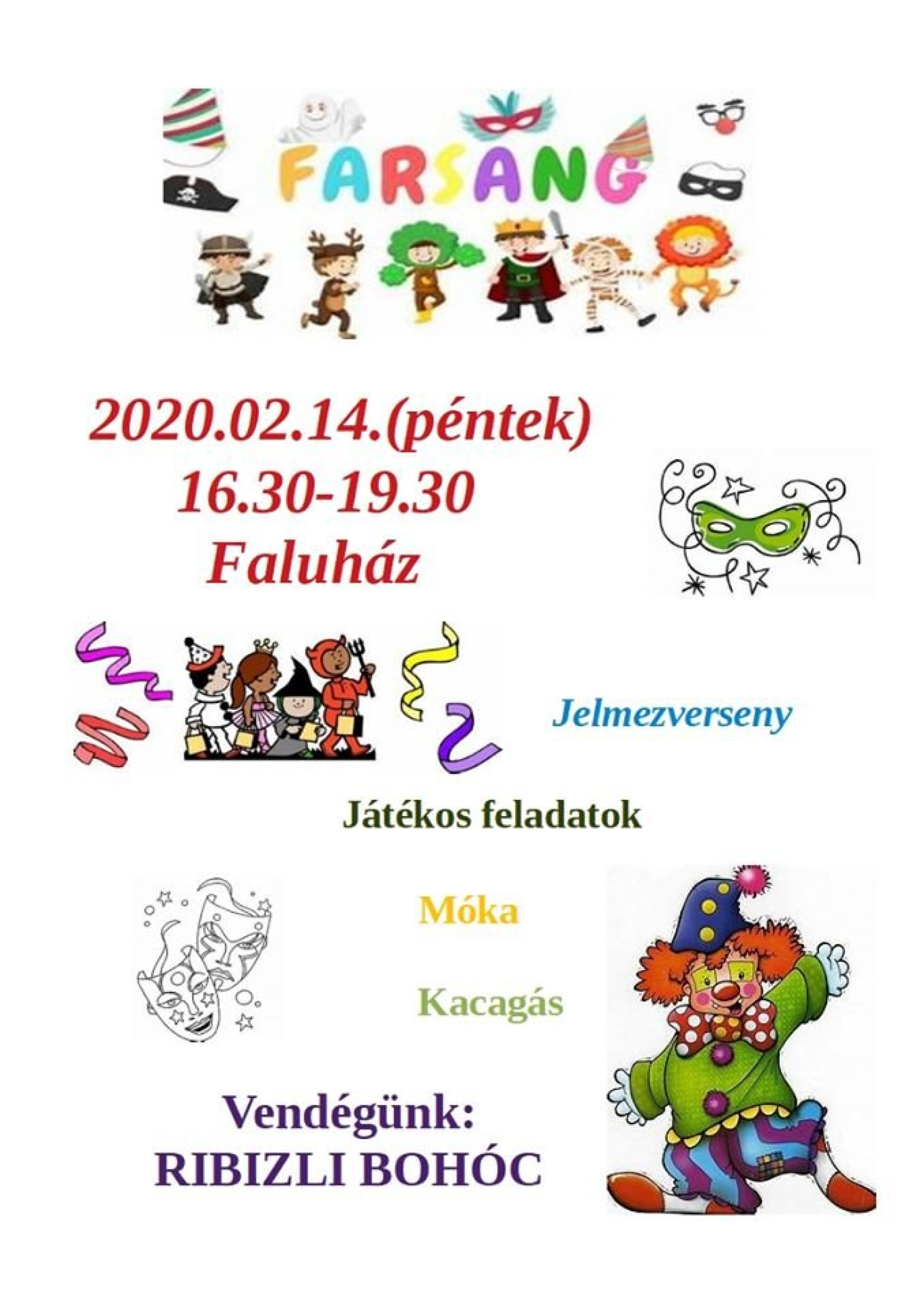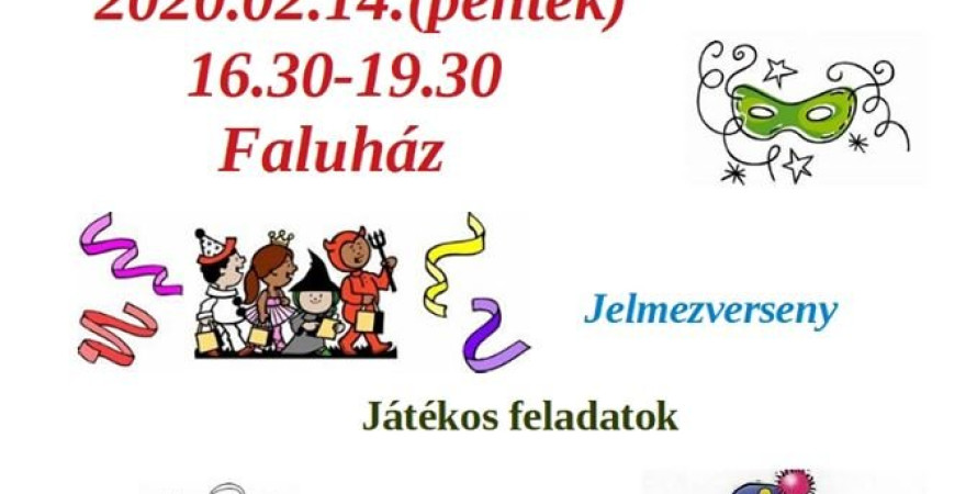 Minden gyermeket szeretettel várunk farssangi mulatságunkra a Faluházban.