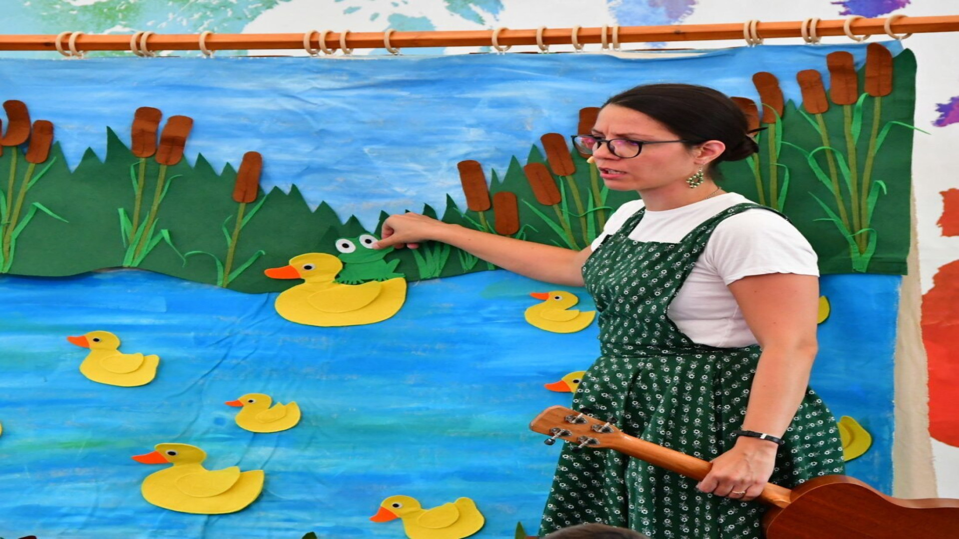 "Hétmérföldes csizmát húzunk az interaktív előadás legelején, és bejárjuk ország-világ 5 legfontosabb helyszínét, ahol nemcsak körül nézünk a gyerekekkel, hanem megmentjük a Susogó kert növényeit és megöntözzük a Jajongó pusztát. A Varázserdőben megtanuljuk a legfőbb szabályokat, hogy hogyan kell viselkedni az erdőkben, illetve megtisztítjuk a Gumikacsa-tavat is a műanyag szeméttől."