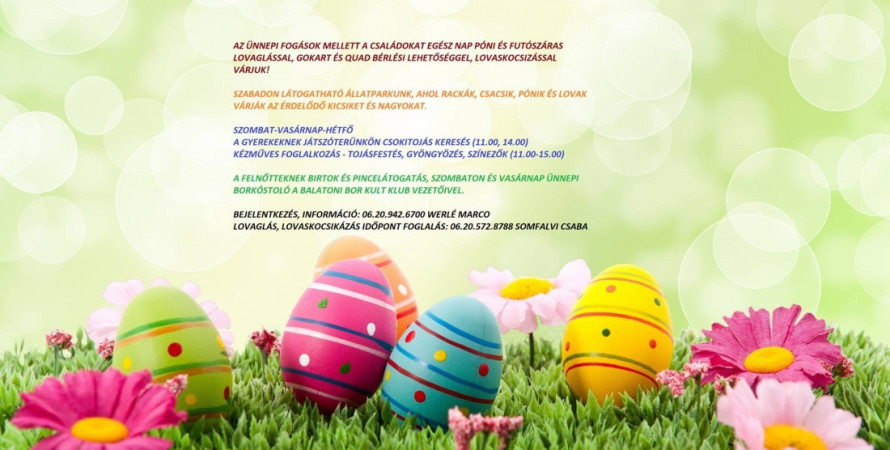 Az ünnepi fogások mellett a családokat egész nap póni és futószáras lovaglással, gokart és quad bérlési lehetőséggel, lovaskocsizással várjuk!
