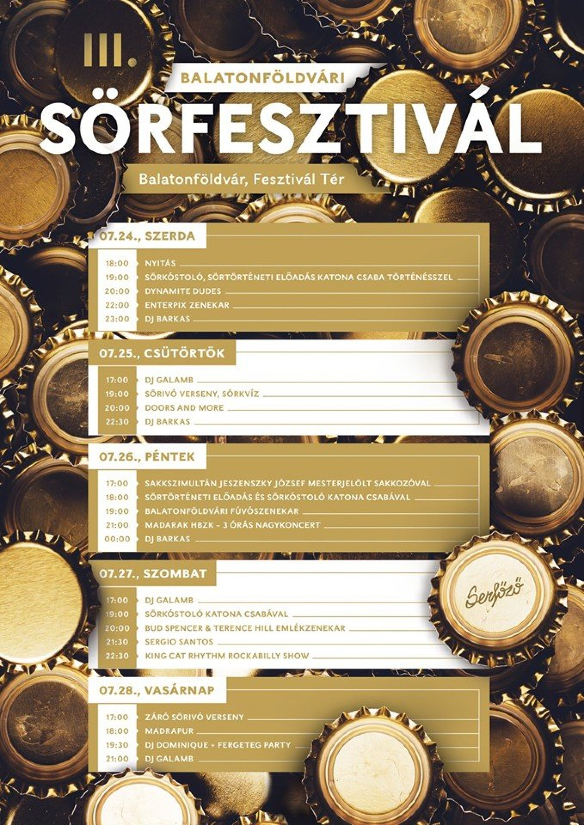 Az Alsóörsi és Keszthelyi Sörfesztiválokat követően, a déli partot is beveszi a Serfőző sörös brigádja: ötnapos rendezvény várja az érdeklődőket Balatonföldváron. A helyszín és a választék egyaránt változatlan: lager, lambic, APA, IPA, EPA, félbarna, gyümölcsös, szezonális, alkoholmentes és búza sörökkel is koccinthatnak a komlónak hódolók a Fesztivál téren. A közel 20 kiállító több mint 100 csapolt és üveges itala között angol, belga, cseh, magyar és német kedvencek is megtalálhatók, amelyeket többek között a Fehér Nyúl Brewery, a Sümegi Sörház vagy a Gallica Hungary csapata prezentál.