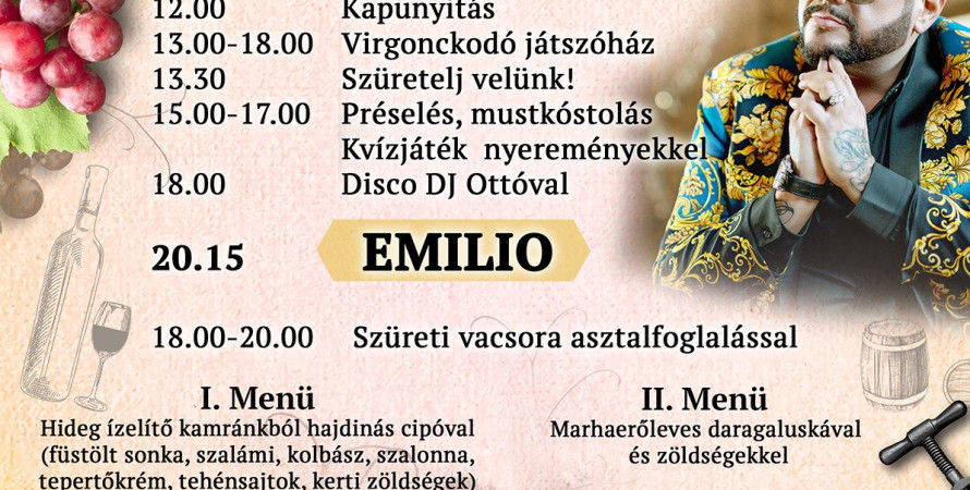 18.00-20.00 Szüreti vacsora asztalfoglalással