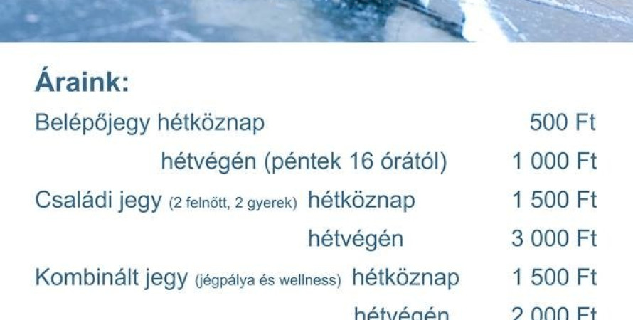 | Kombinált jegy (jégpálya és wellness) hétköznap | 1500 Ft |