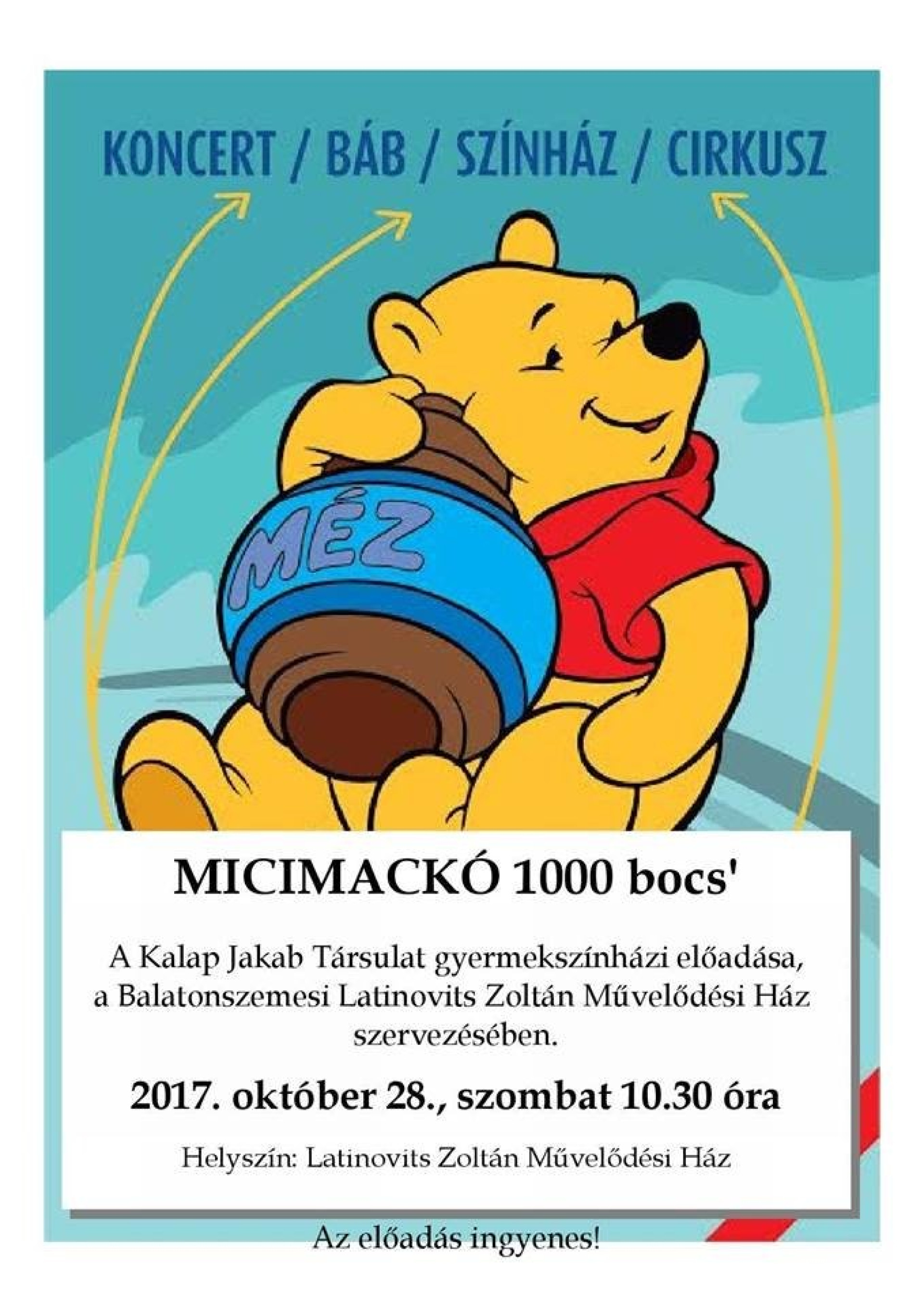 A Kalap Jakab Társulat gyermekműsora a Latinovits Zoltán Művelődési Ház szervezésében Balatonszemesen október 28-án szombaton 10:30 órától.