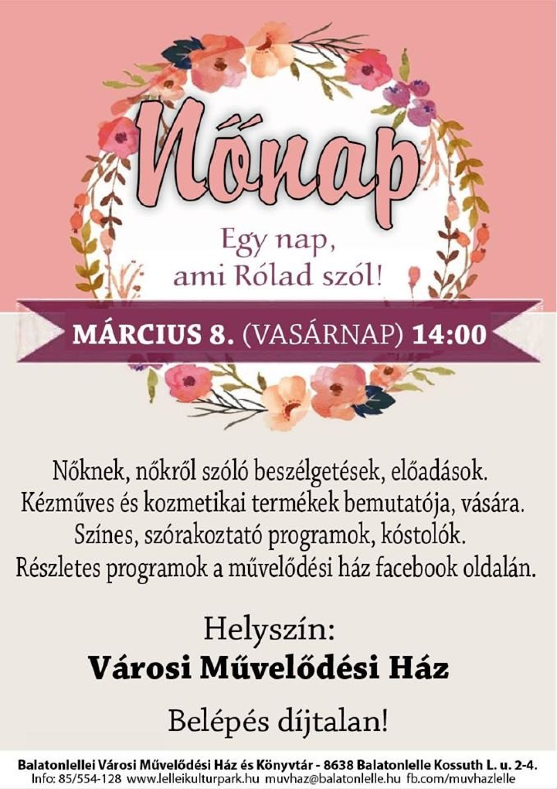 Várunk szeretettel Nőnapi délutánunkra! Egy nap, ami rólad szól! :)