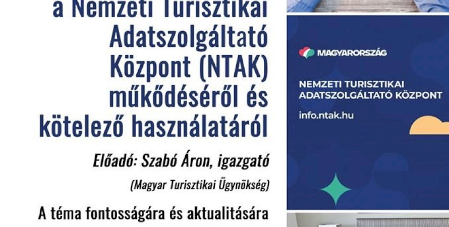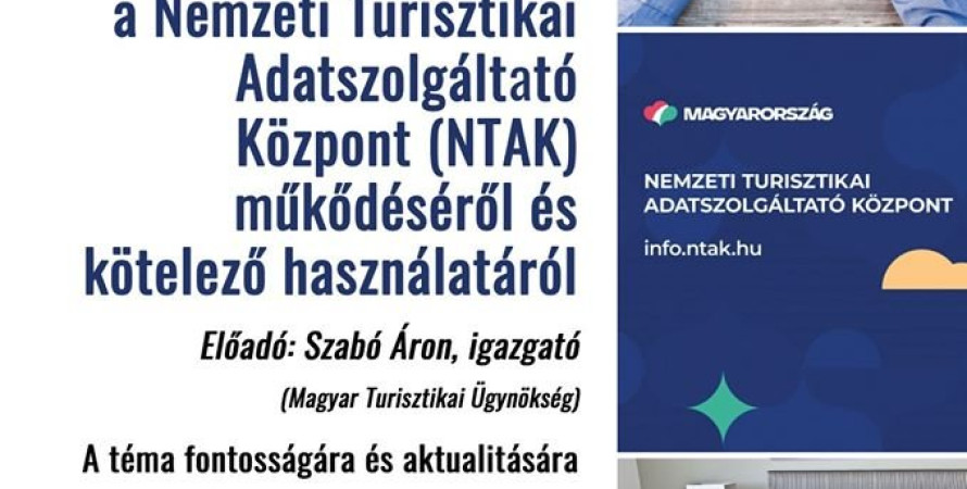 2019. november 27-én tájékoztató előadást tart a Nemzeti Turisztikai Adatszolgáltató Központ (NTAK) működéséről, kötelező használatáról.