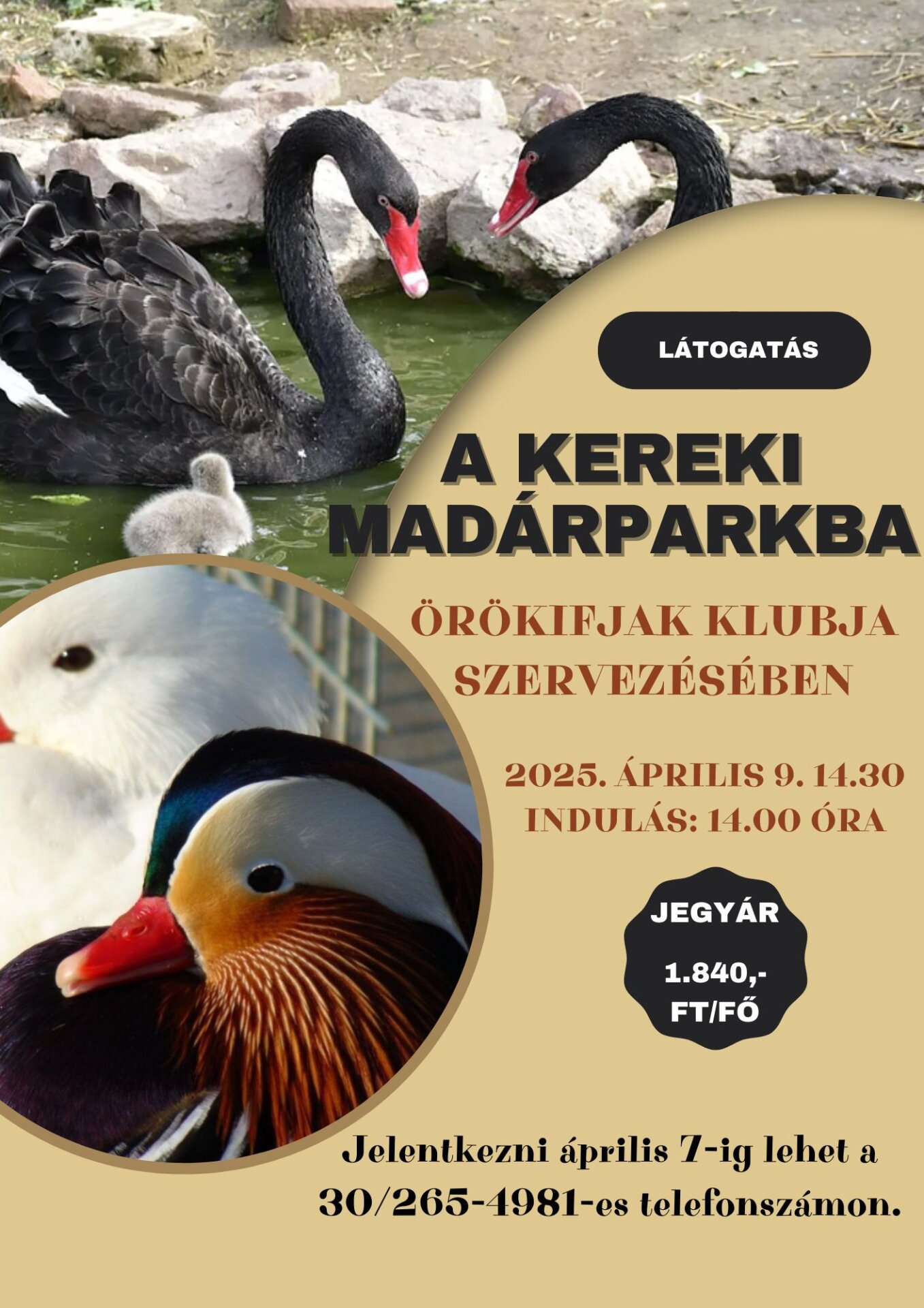 Ez alkalommal a Palóczi Horváth Ádám Közösségi Házban megrendezésre kerülő Örökifjak Klubja keretein belül, a résztvevők most ellátogatnak a Kereki Madárparkba!