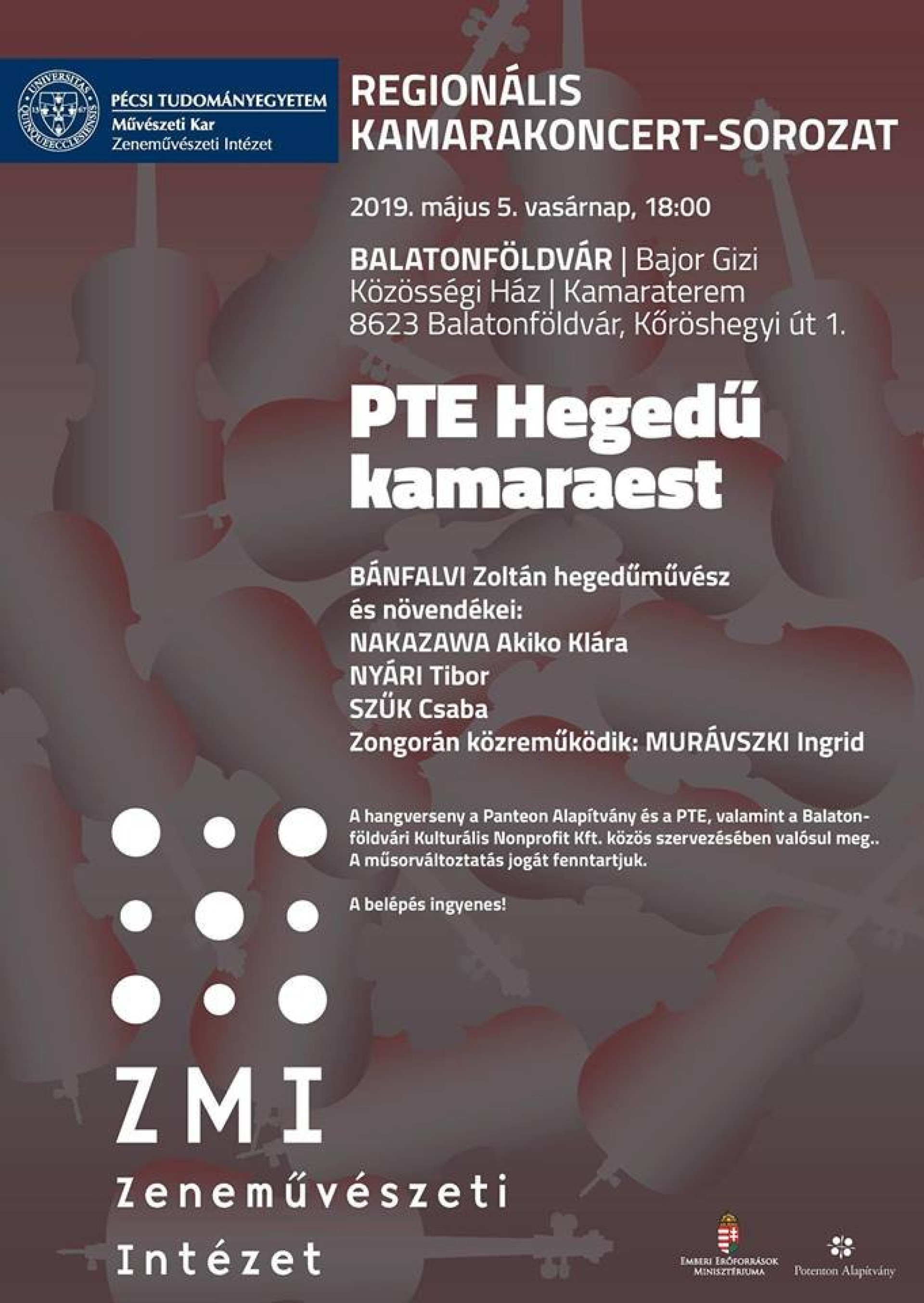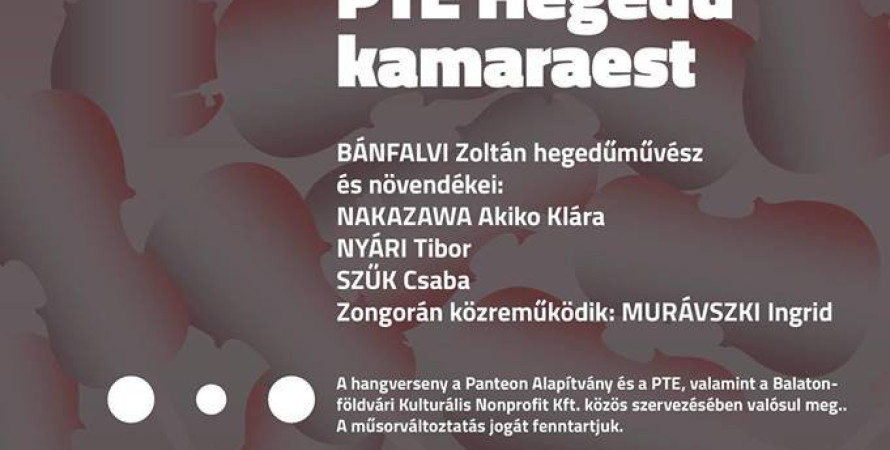 A Pécsi Tudományegyetem Művészeti Kar Zeneművészeti Intézete nagy örömmel folytatja a 2017 tavaszán, a Potenton Alapítvánnyal közöz szervezésben útnak indított regionális kamarakoncert-sorozatát Somogy-, Tolna-, Baranya- és Zala-megye kis és nagyvárosaiban, összesen 14 helyszínen.