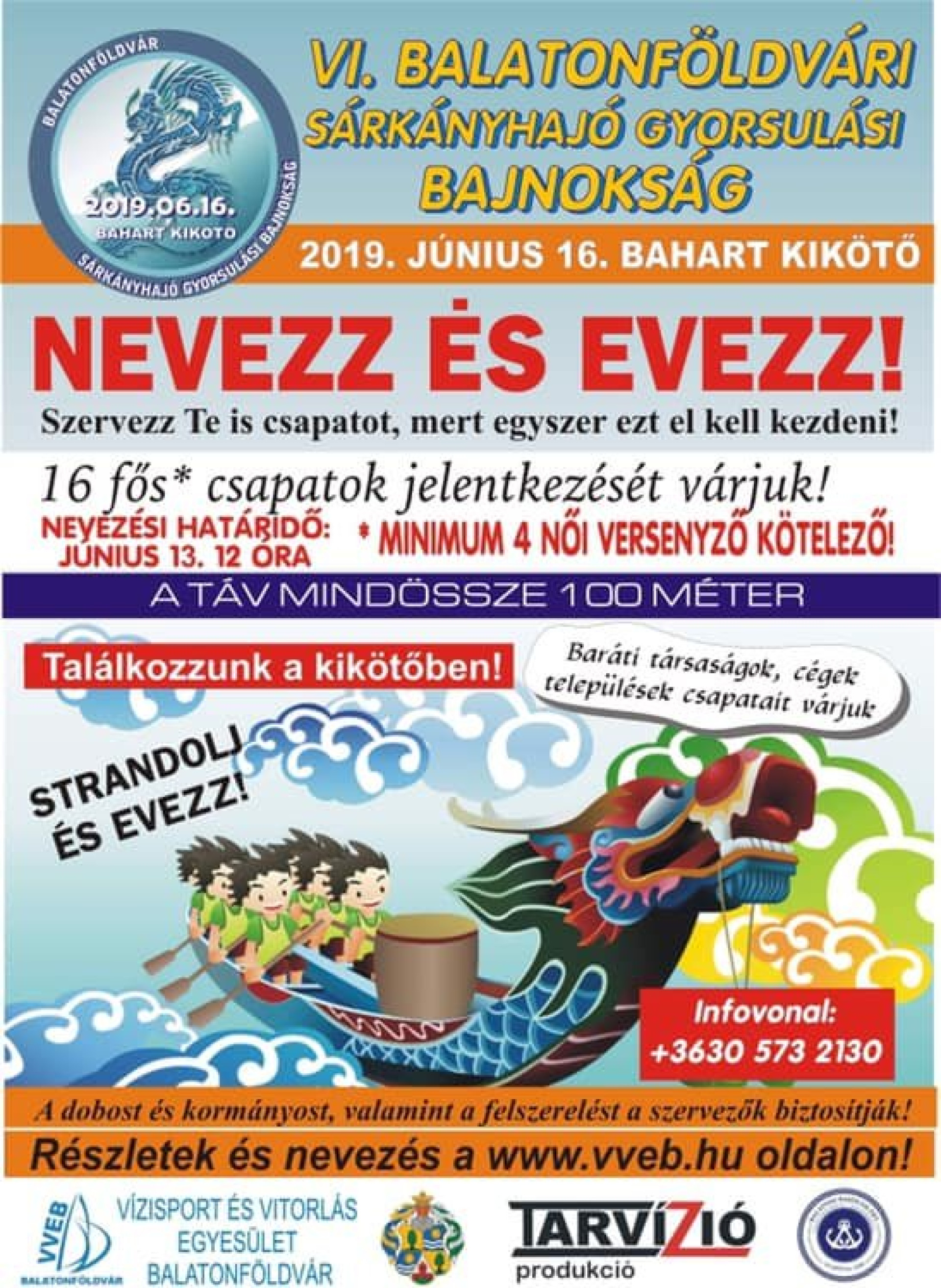 Június 16-án megrendezésre kerül az VI. Sárkányhajó Gyorsulási Bajnokság Balatonföldváron a Kikötőben.