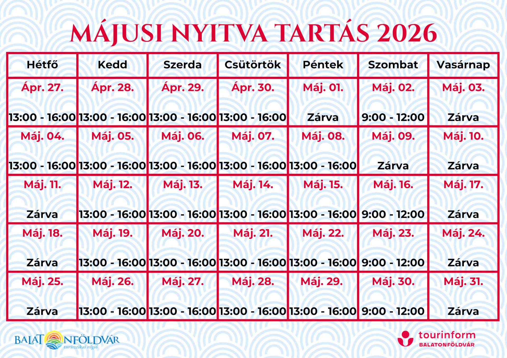 Tájékoztatjuk kedves Ügyfeleinket, hogy a balatonföldvári Tourinform iroda április 27-én ügyeleti nyitva tartással kinyit.