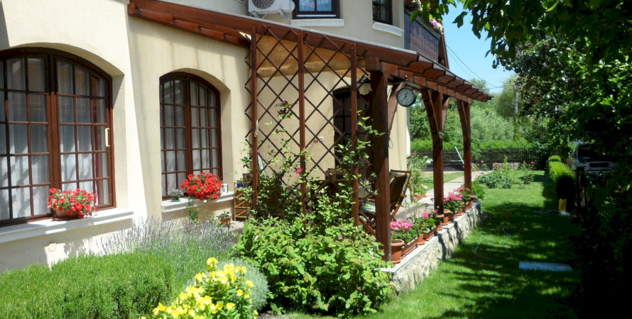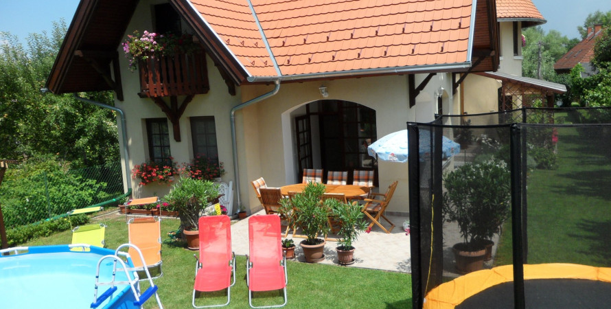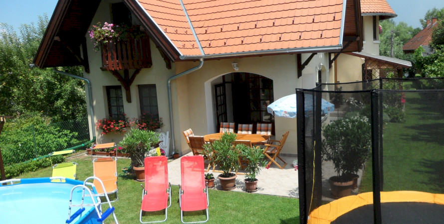 A gondozott, virágos kertben medence, trambulin, valamint játszótér áll a vendégek rendelkezésére.