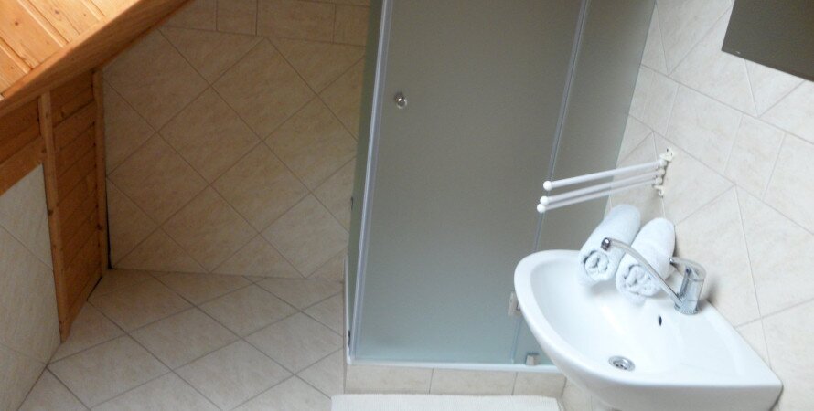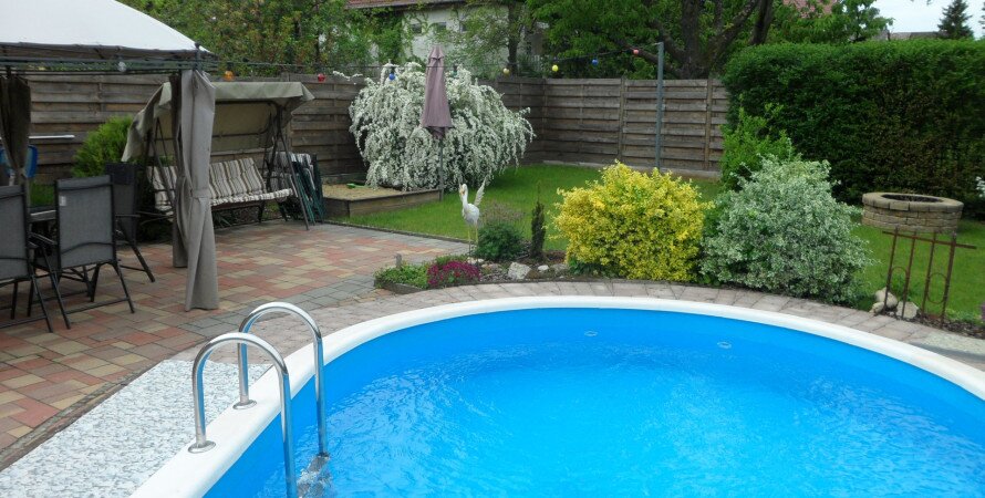 Balatonföldvár villanegyedében kiadó medencés, kertes házban lévő 3 szobás emeleti apartman.