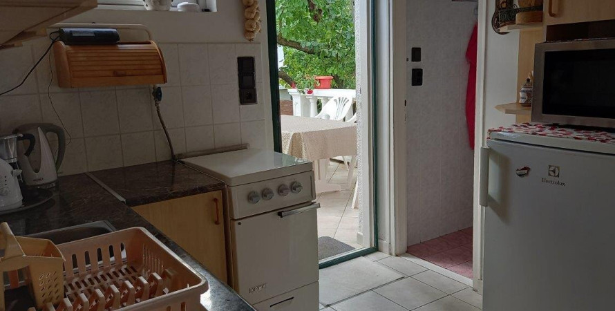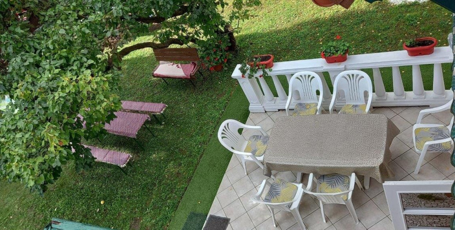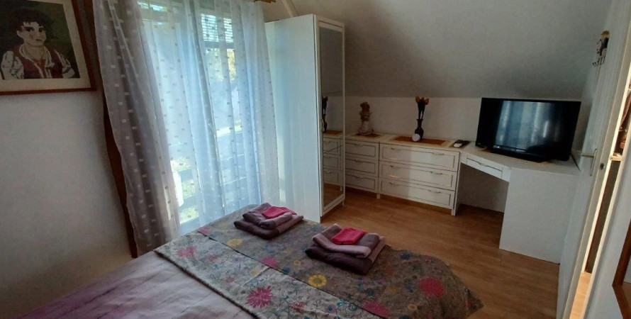 A zárt udvarban az autóbeállási lehetőség 3-4 személygépkocsi részére kényelmesen biztosított. A fáktól övezett kertben esőház, napozó ágyak, hinta, bográcsozó és grillező található. Mindkét szinten van légkondicionáló berendezés, síkképernyős okos tv (wifi) és füstjelző. Az ajtókon, ablakokon szúnyoghálók és redőnyök vagy reluxák találhatók. Az alsó szinten kettő, a felsőn három hálóhelyiség van egy-egy fürdőszobával (zuhanyzó, mosdó, WC, centrifuga). Az alsó szinten a konyha jól felszerelt, gáztűzhely, hűtőszekrény, mikrohullámú sütő, kávéfőző, edény- és étkezési készlet, széf áll a vendégek rendelkezésére. A felső szinten mikró, étkező készlet, egy mini hűtőszekrény, babakád, kávé- és teafőzési lehetőség van.