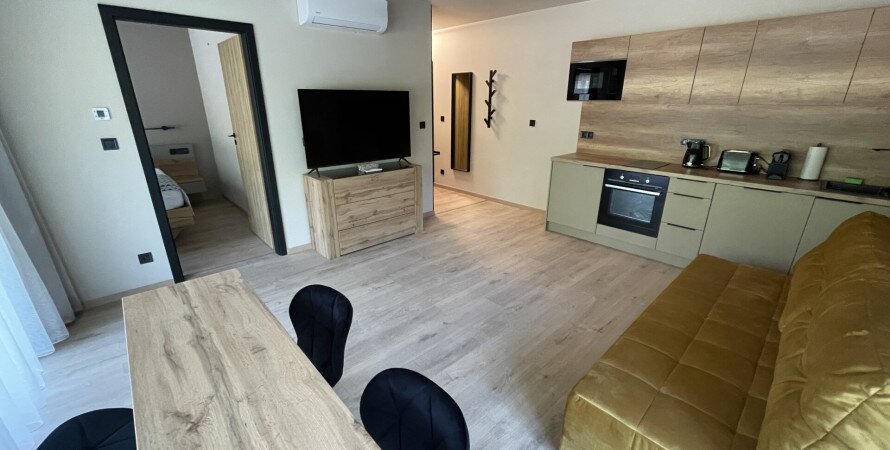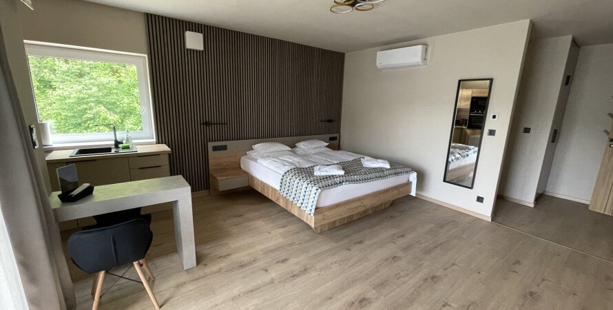 Apartmanházunk zárt lakóparkban helyezkedik el csodálatos erdős környezetben, ami biztosítja a nyugodt kikapcsolódást.