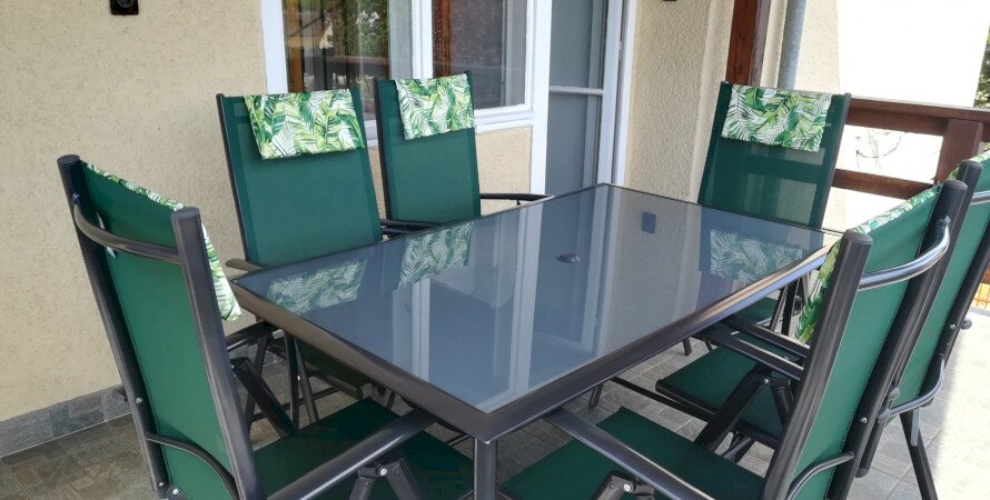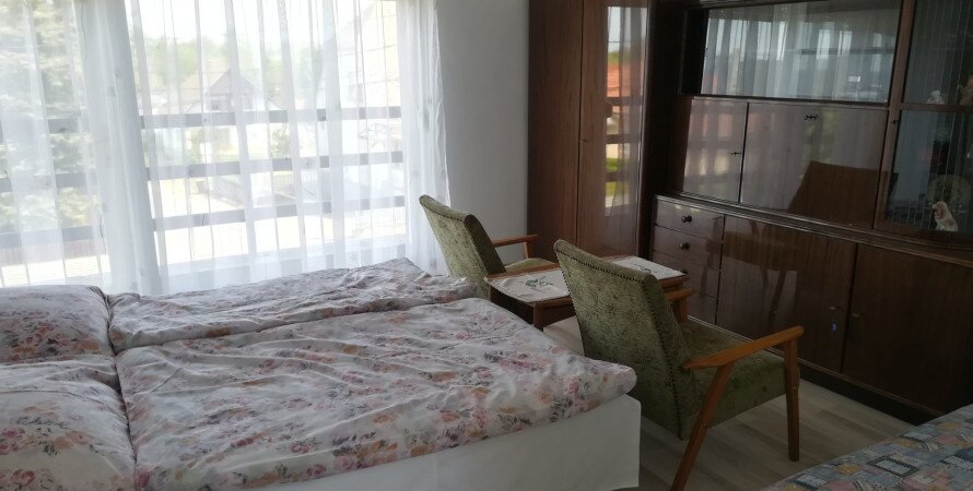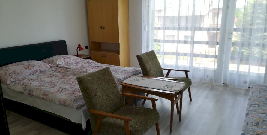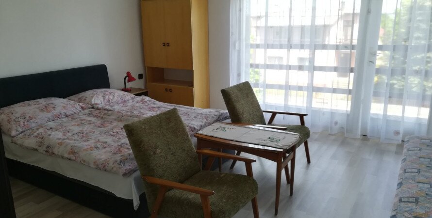 Kiadó 2 önálló apartmanból álló ház. A földszint melléképületrészén van a 2 személyes, az emeleten a 4 fős (2 db kétágyas szoba, mindegyik szobában 1-1 db pótágy elhelyezési lehetőség). Mindegyik apartmanhoz felszerelt konyha, fürdőszoba és tágas terasz tartozik. Az emeleti apartmanhoz a földszinten elkülönített nappali áll a vendégek rendelkezésére.