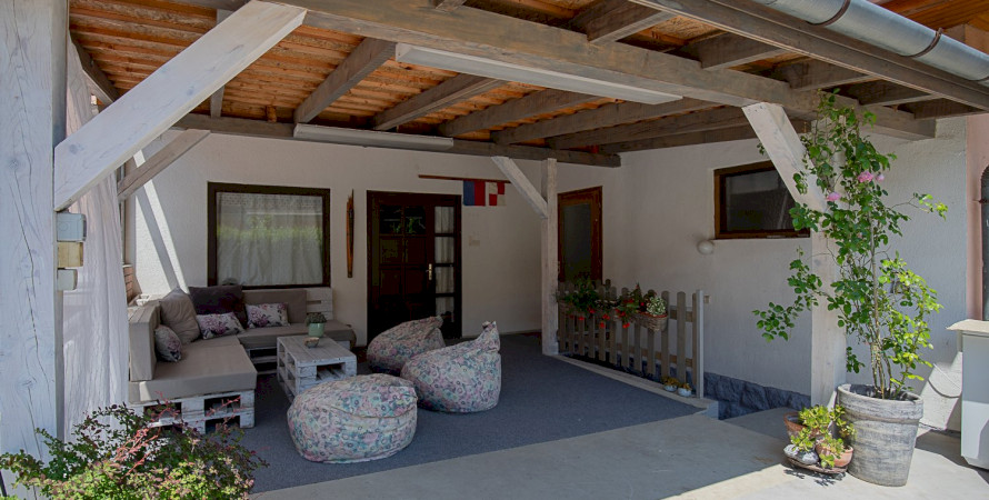 Szél Apartman (2 hálószobás), egy külön álló kb. 70 nm2-es ház, nagy fedett terasszal.