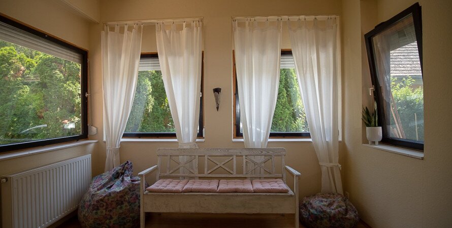 Két különálló, teljesen felszerelt apartman, hangulatos kertre néző teraszokkal.